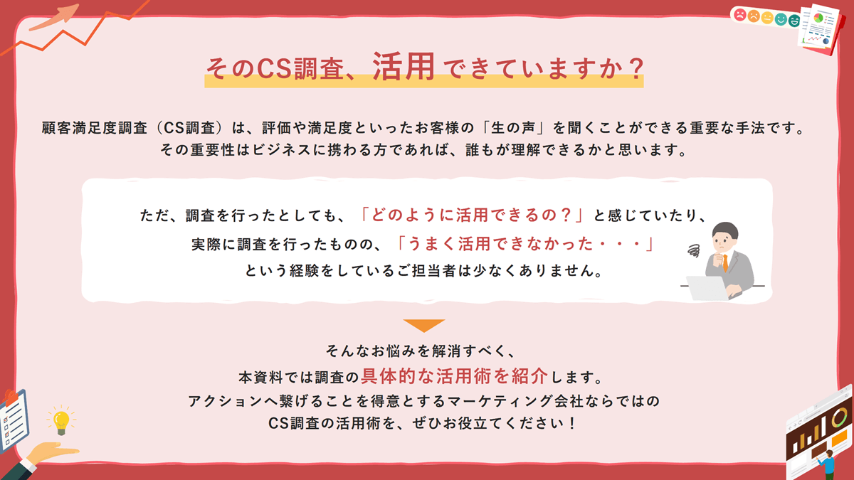 「マーケティングのプロだからこそできるCS調査の活用7選」資料ダウンロード