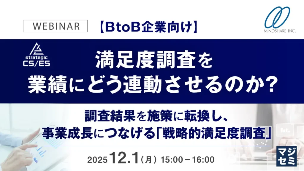 【12/1(月) 無料オンライン開催|BtoB企業向け】「満足度調査を“業績”に連動させる」――調査結果を戦略的に事業成長へつなげる構造を解説するセミナーを開催!